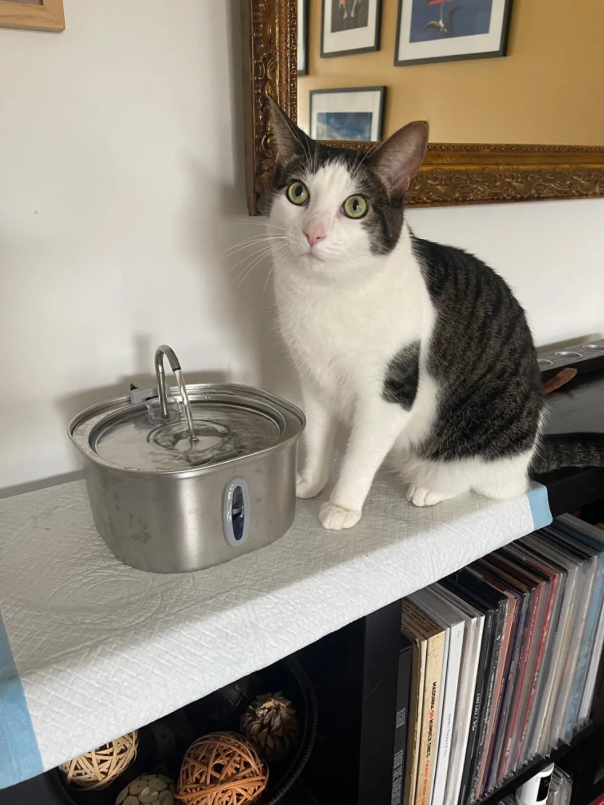 הוואי והייתי רואה את המזרקה הזאת הרבה לפני, המזרקה כמעט ולא משמיעה קול, והחתולים שלי שותים עכשיו הרבה יותר מים מאי פעם.